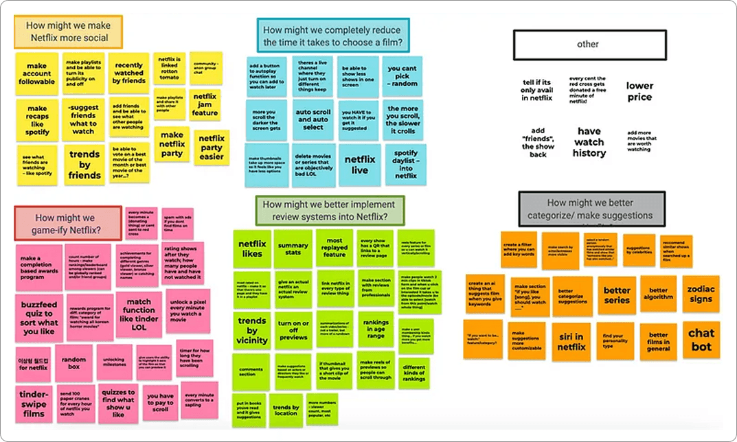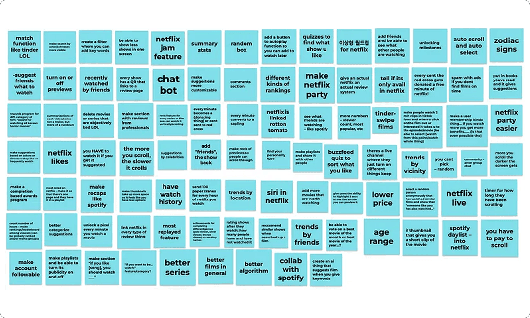 Using FigJam's sticky notes, we started the process with a brain dump of 100+ creative to silly ideas.