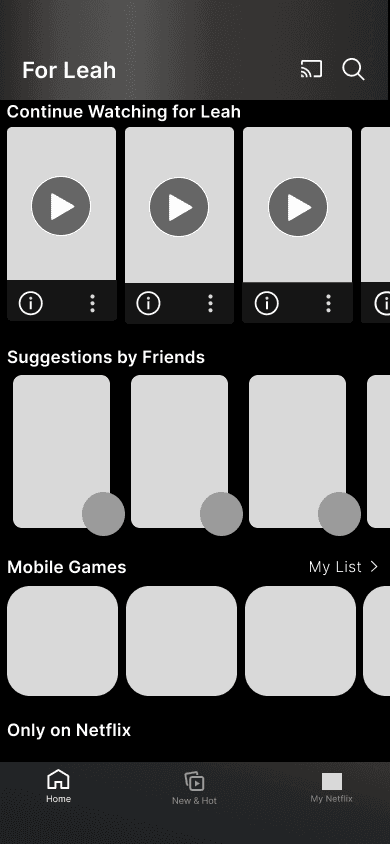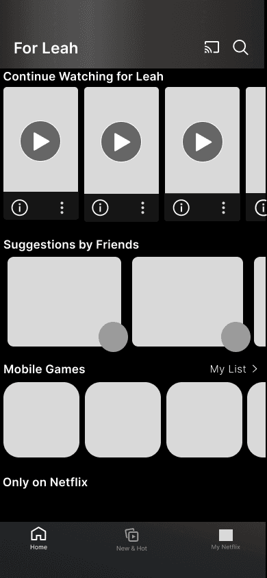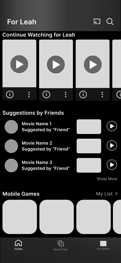 For the most efficient movements and for the convenience of users, I placed the entry point of the feature under "Continue Watching…". If a user enters the app to finish watching they can get to it the fastest, but if the user's wants is to watch something new, its most personalized recommendations will be right under.