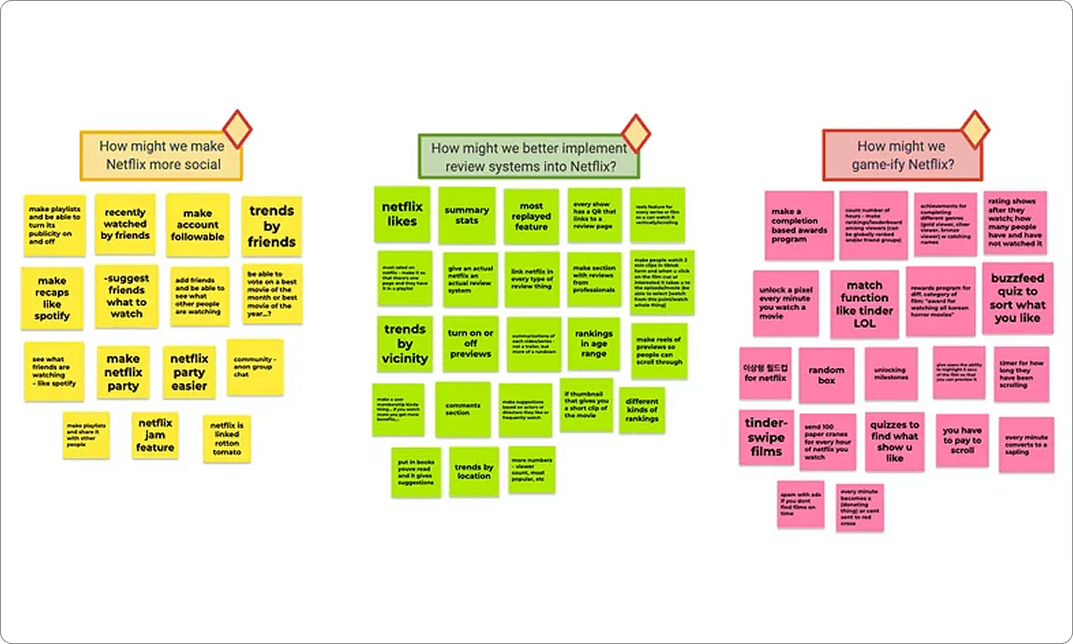 From there, we categorized the ideas and narrowed them into three best solution spaces.